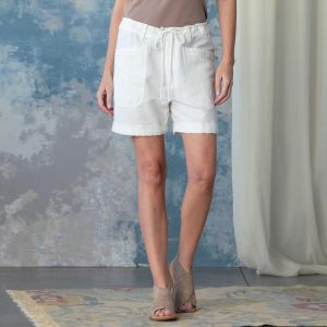In a versatile style and a flattering fit. these soft. garment-dyed shorts feature a subtle woven texture. and delightfully chic. sunny weather details: tacked. rolled cuffs. waist tie and belt loops. front and back patch pockets. back darts for fit. and natural shell button closure. Linen/cotton. Machine wash. Imported. Exclusive. Sizes XXS (0 to 0). XS (0 to 2). S (4 to 6). M (8 to 10). L (12 to 14). XL (16 to 18). 5 inseam.