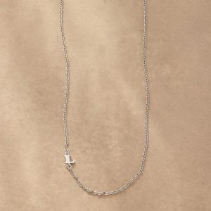 Elegance with a personal touch. Our necklace is handcrafted with upper-case serif letters A to Z. Sterling silver chain and lobster clasp; rhodium-plated sterling silver letters. Made in USA. 17l.